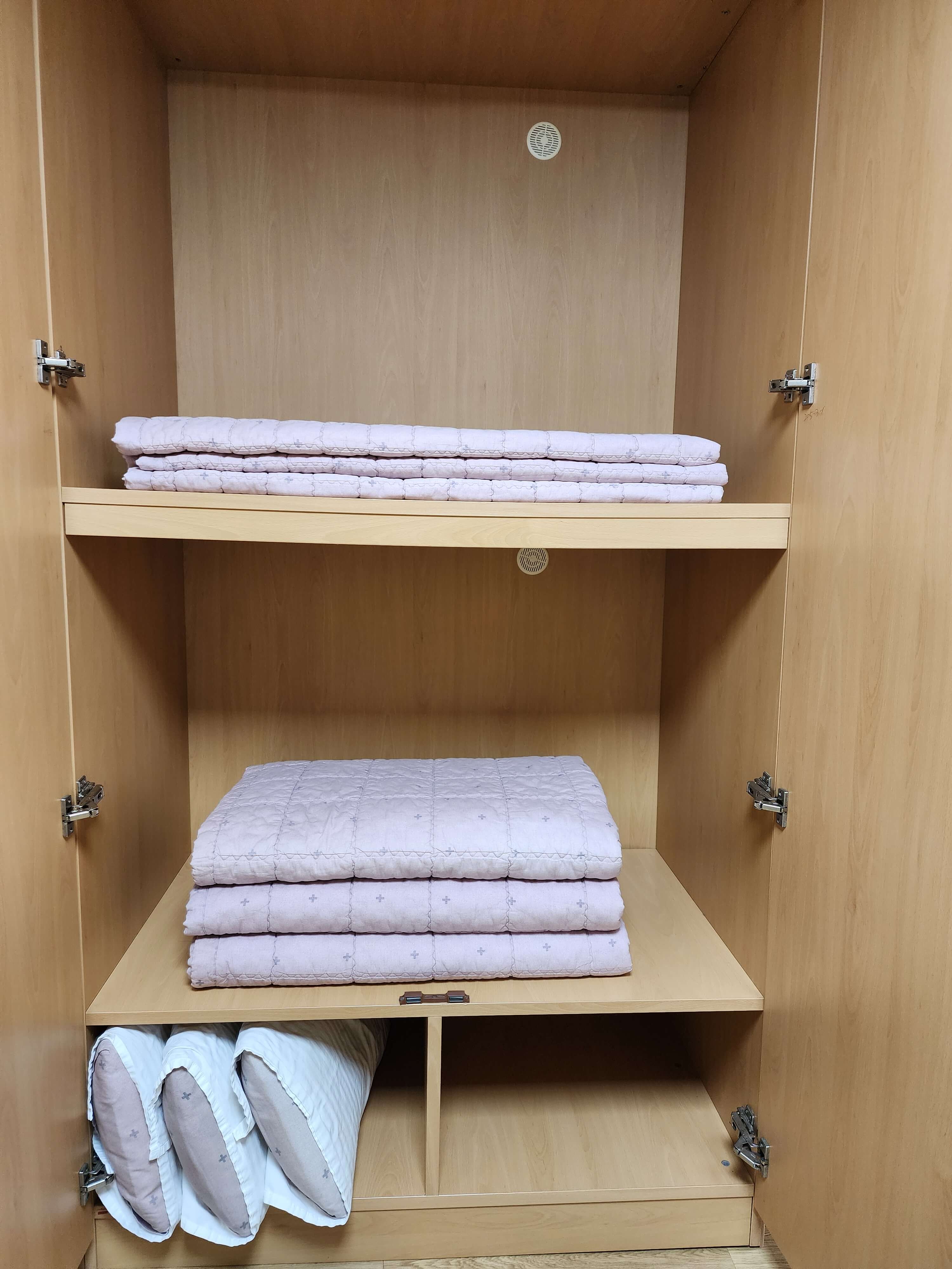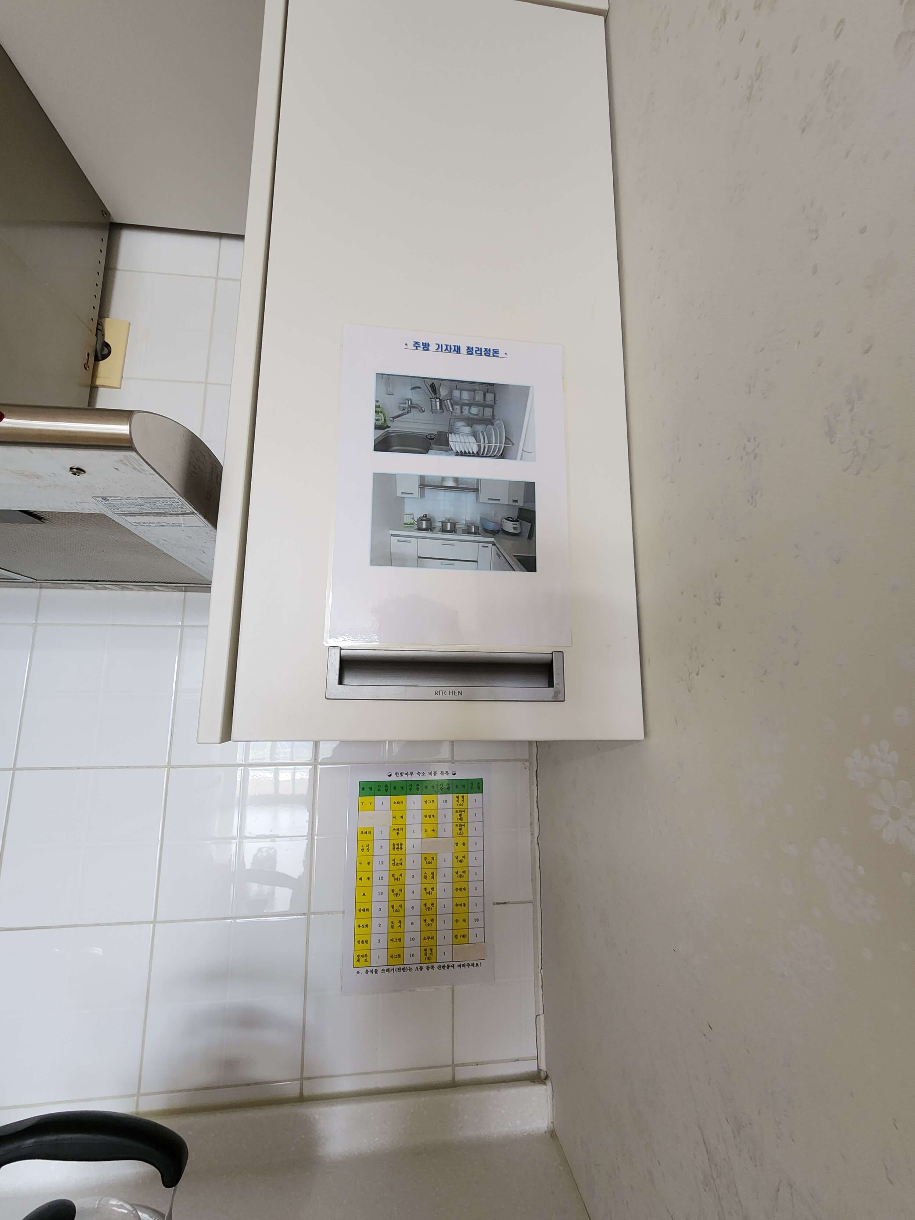 샤워실과 구비되어 있는 밥상, 옷장, 이불장의 경첩들이 많이 헐렁헐렁해서 불안한 점이 아쉬웠습니다.