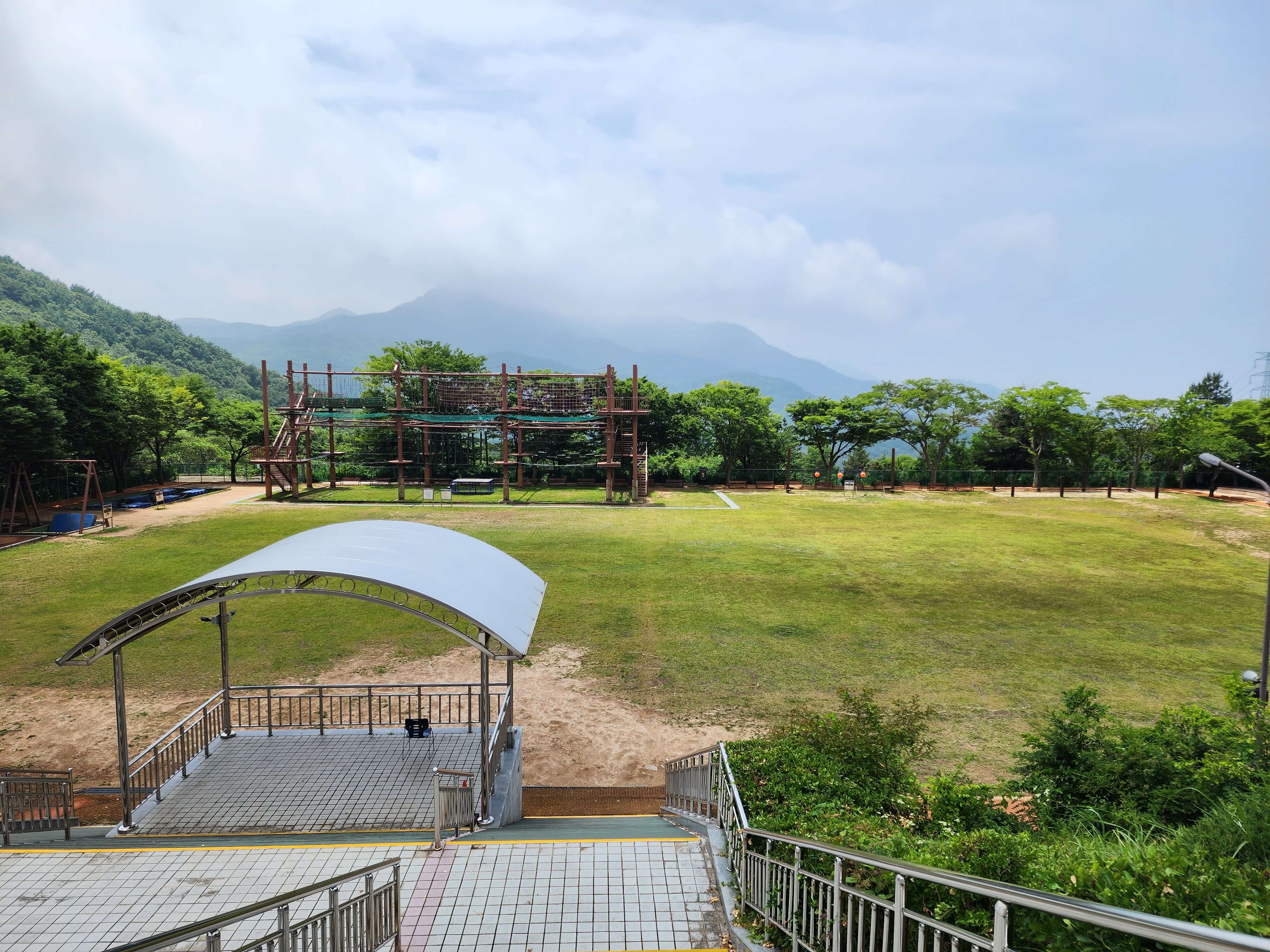- 본관 맞은편에 넓은 운동장 겸 극기훈련장이 있습니다.